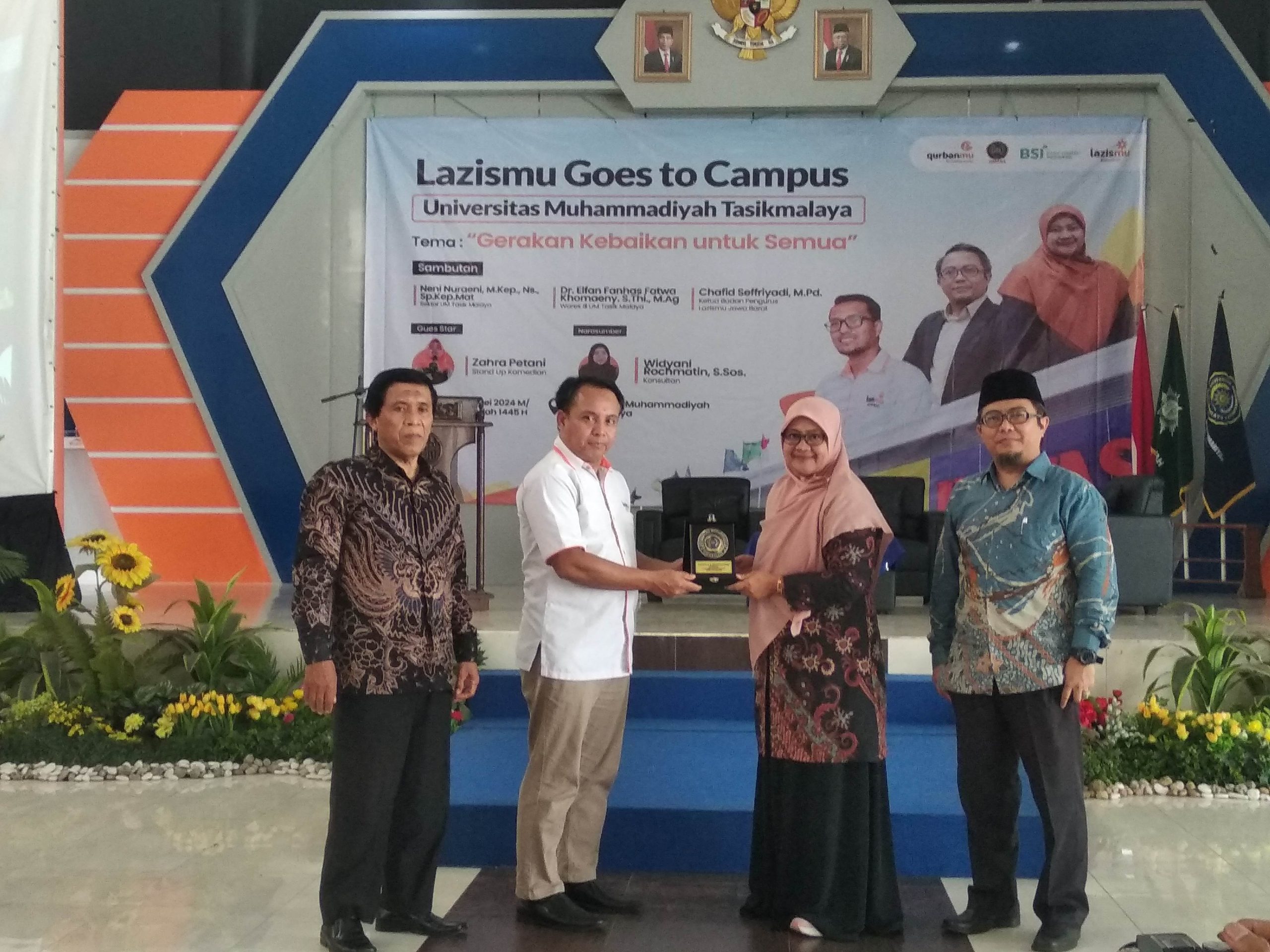 Lazizmu Goes to Campus Universitas Muhammadiyah Tasikmalaya dilaksankan pada hari rabu 29 mei 2024. Kegiatan yang dilaksanakan di Graha UMTAS ini di laksanakan dengan tema “Gerakan Kebaikan Untuk Semua”. Lazizmu Goes to Campus UMTAS di hadiri oleh mahasiswa dan mahasiwi dari berbagai prodi Universitas Muhammadiyah Tasikmalaya. Beragam acara di tampilkan,salah satunya yaitu dari stand up komedian zahra shafiah atau bisa dikenal dengan zahra petani.Tidak lupa juga dilaksanakan penyerahan beasiswa secara simbolik kepada mahasiswa/mahasiswi Universitas Muhammadiyah Tasikmalaya.